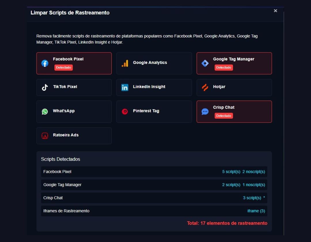 Elimine pixels, chats, pop-ups e tudo que não é seu com apenas um clique.