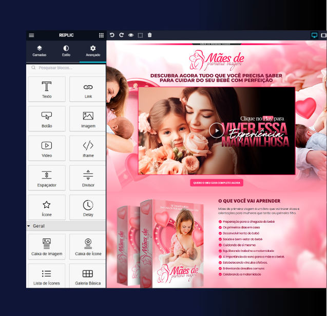 Com certeza! Disponibilizamos aulas práticas e tutoriais detalhados para ensinar você a utilizar todas as funcionalidades da Replic. Assim, você pode criar e personalizar suas páginas de maneira profissional, mesmo sem experiência técnica.